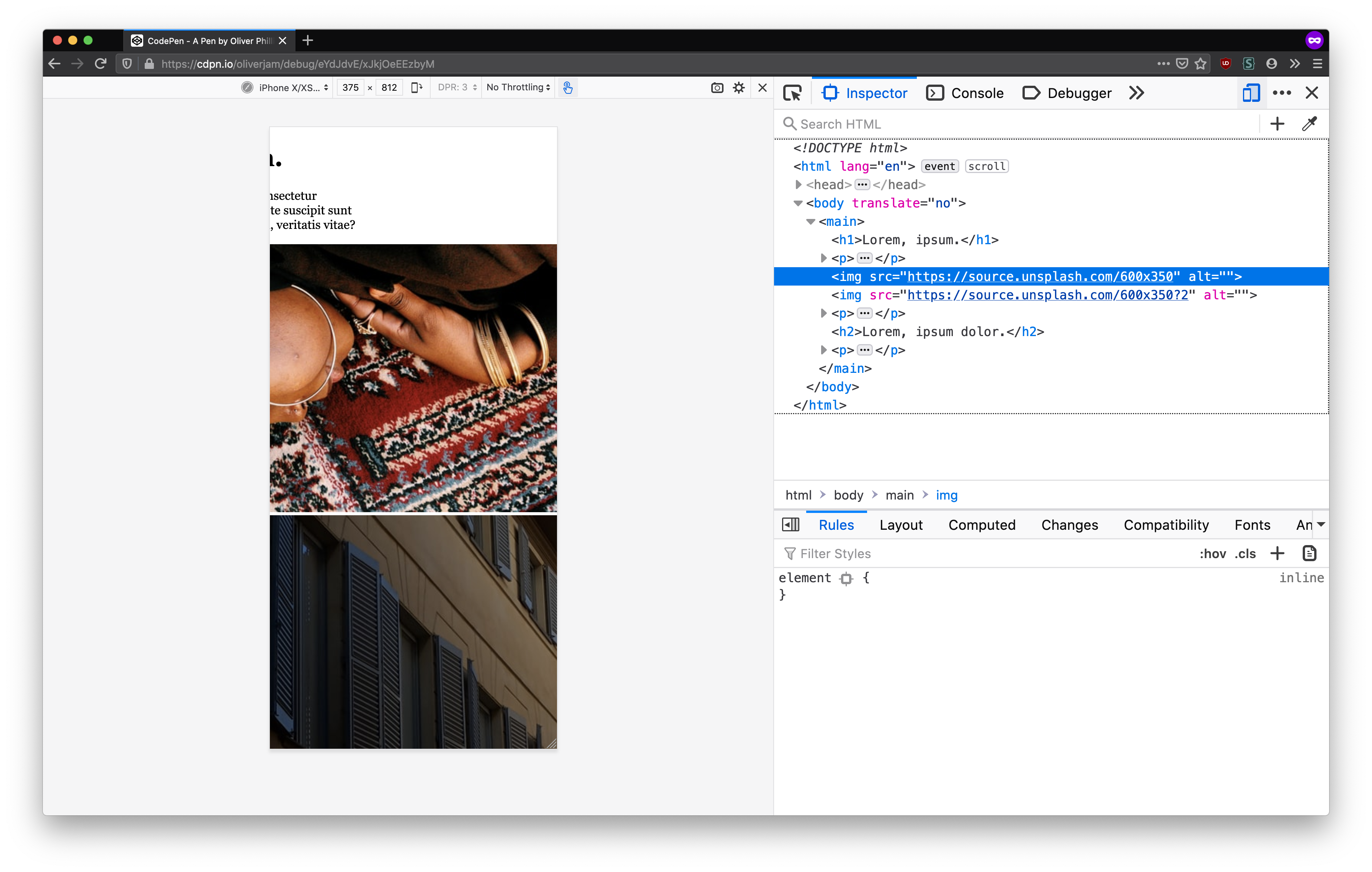 Since we have more space it would be nice to put the images next to each other in a row. We could use a media query for this, which would let us specify some CSS rules that only applied above a certain viewport width.